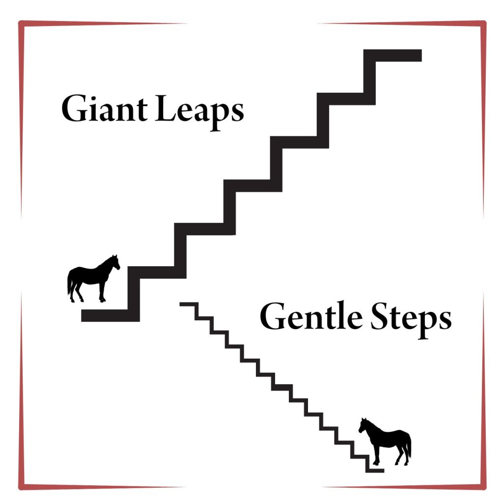The same is true of training horses. Each goal, or step, or stage of our horse’s training needs to be broken down into smaller steps.